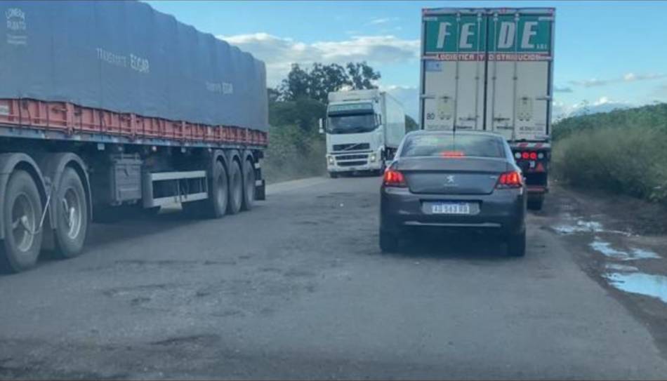 En la transitada arteria circulan muchos camiones que deben detenerse casi totalmente en varios lugares para atravesar los baches y desniveles, como en la zona del puente del río Yatasto, en Metán, lo que representa un gran riesgo.